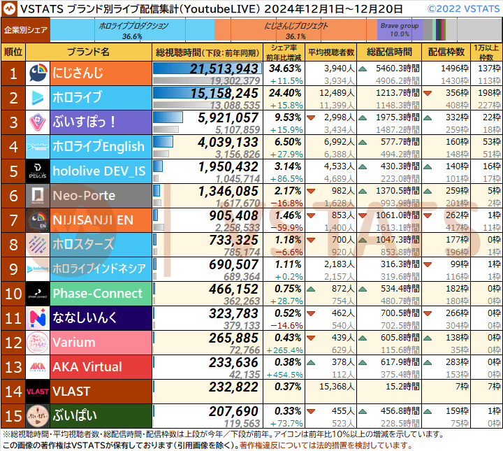 【ホロライブ】こうして見ると業界トップっていまだにじさんじなんだな
